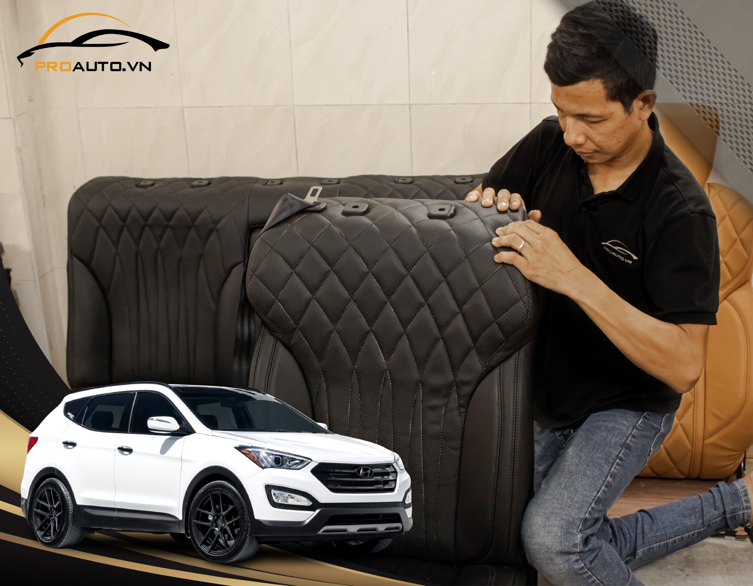 Quy trình bọc ghế da ô tô SantaFe tại Proauto.vn