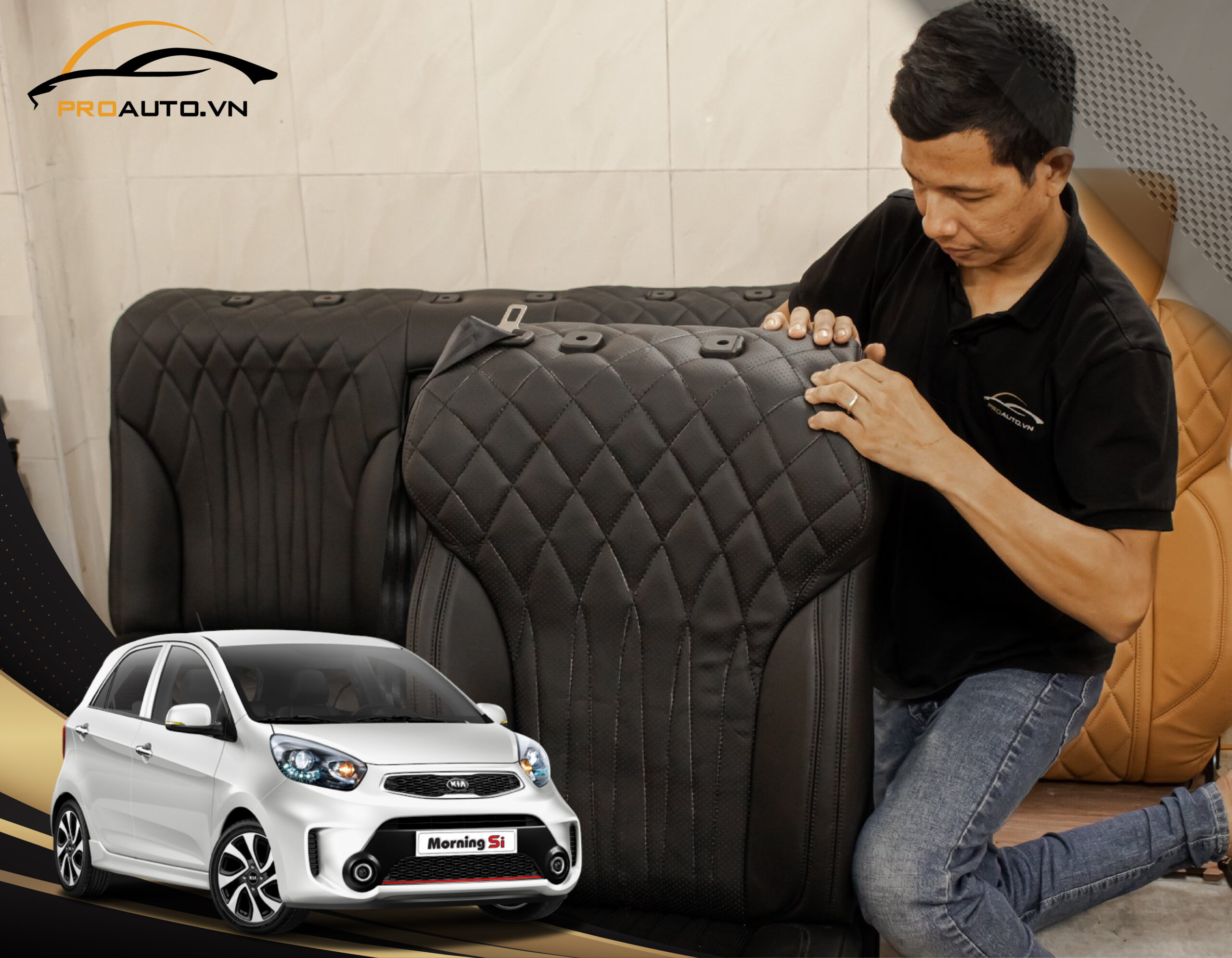 Quy trình bọc ghế da xe KIA Morning tại Proauto.vn