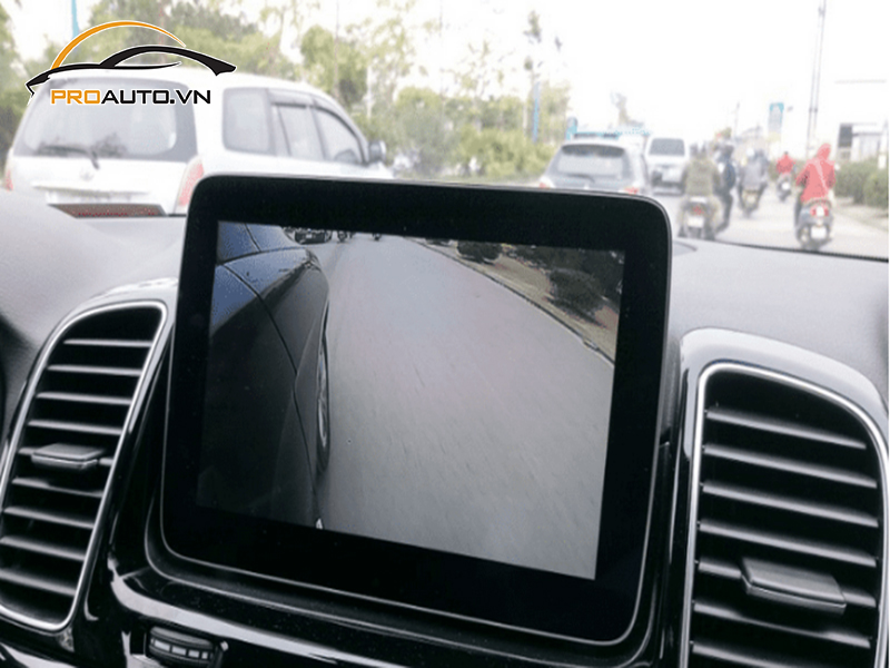 Đây là vị trí khó quan sát nhất đối với các tài xế khi ngồi trên xe, đặc biệt là khi trên những con đường nhỏ. Hình ảnh được ghi lại sẽ hiển thị trên màn hình trong xe, từ đó người lái có thể theo dõi và kiểm soát tình huống giao thông.