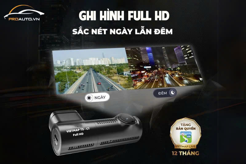- Vietmap C1 hỗ trợ ghi hình Full HD rõ nét ngày lẫn đêm lưu lại từng khoảnh khắc chuyến đi.