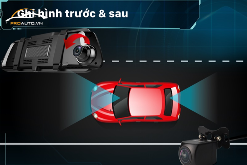 | Ống kính | Kênh trước góc rộng 170° Kênh sau góc rộng 150° Có thể điều chỉnh góc quay camera |