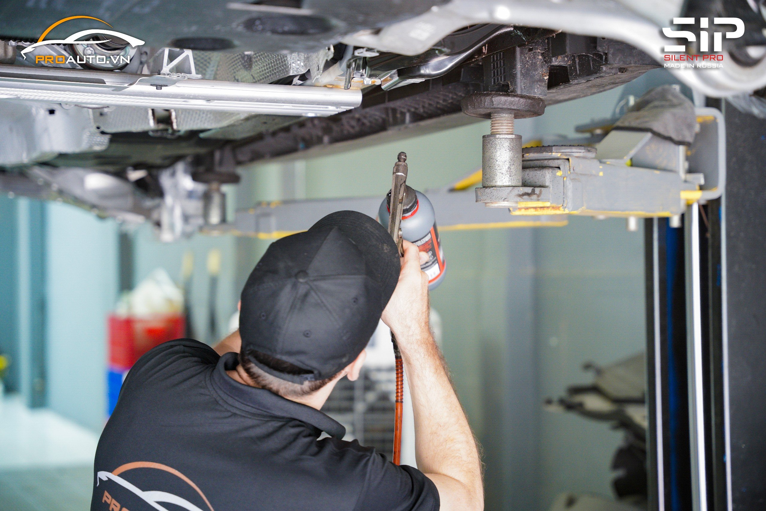 Hình ảnh thi công xịt phủ gầm xe ô tô tại Proauto.vn: