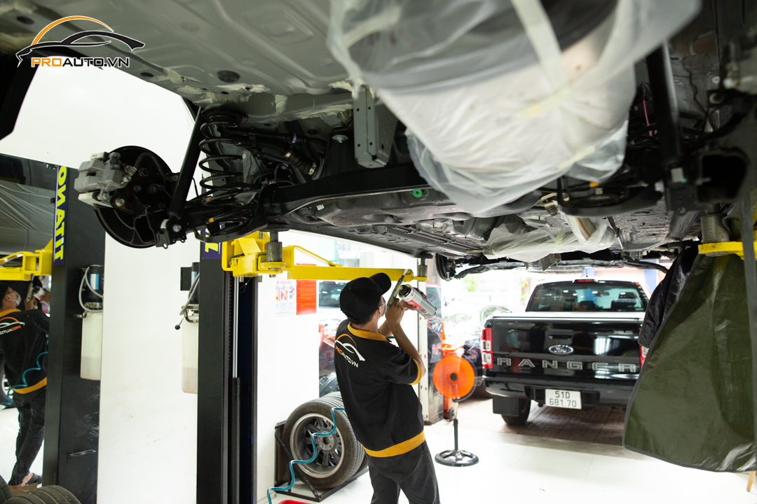 Hình ảnh thi công xịt phủ gầm xe ô tô tại Proauto.vn:
