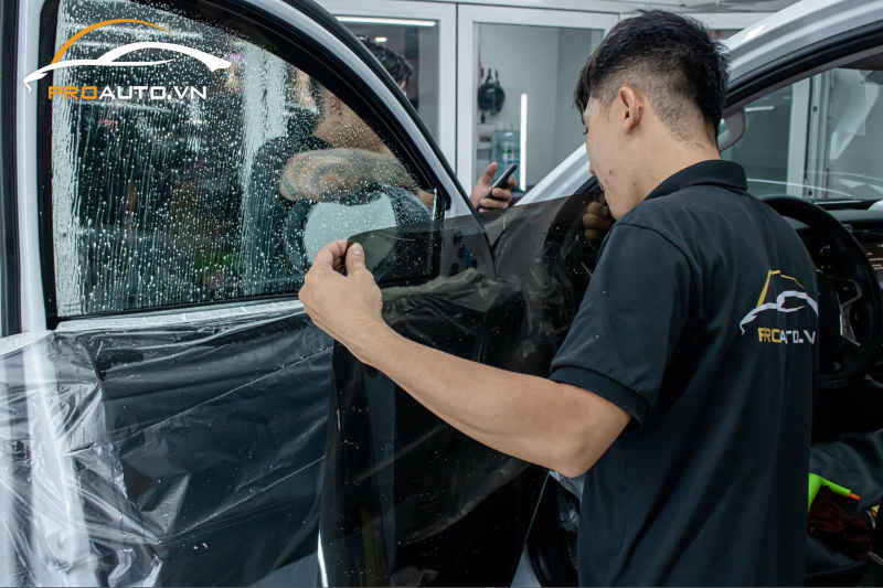 Hình ảnh thi công dán phim cách nhiệt xe hơi tại PROAUTO.VN