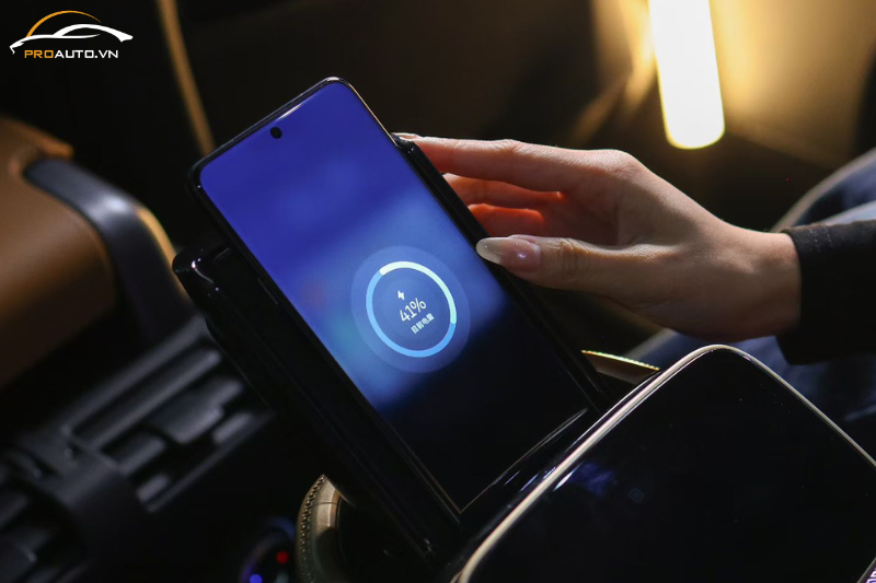 Với sạc không dây trên ghế xe limousine thương hiệu Hongyi. Bạn chỉ cần đặt điện thoại lên khu vực quy định (Place & Charge), điện thoại sẽ được nạp năng lượng ngay lập tức.