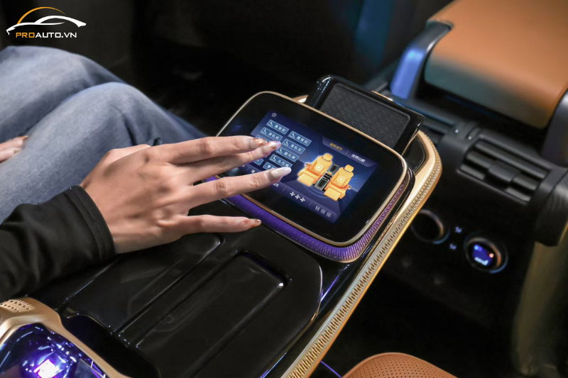 - Thiết kế thẩm mỹ: Tay vịn pha lê và đèn LED 128 màu biến khoang xe thành không gian nghệ thuật.