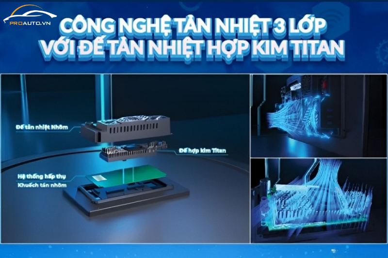 Trang bị công nghệ tản nhiệt 3 lớp hiện đại, màn hình android ZX ADAS+ kết hợp đế hợp kim Titan cao cấp, giúp thiết bị luôn duy trì hiệu suất ổn định dù hoạt động trong môi trường nhiệt độ cao: