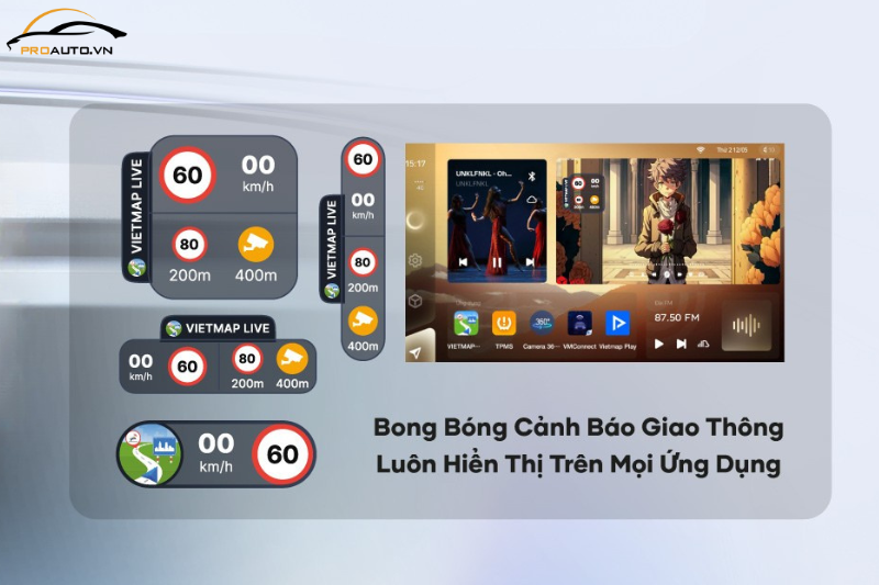 - Cảnh báo camera phạt nguội, giới hạn tốc độ và biển báo