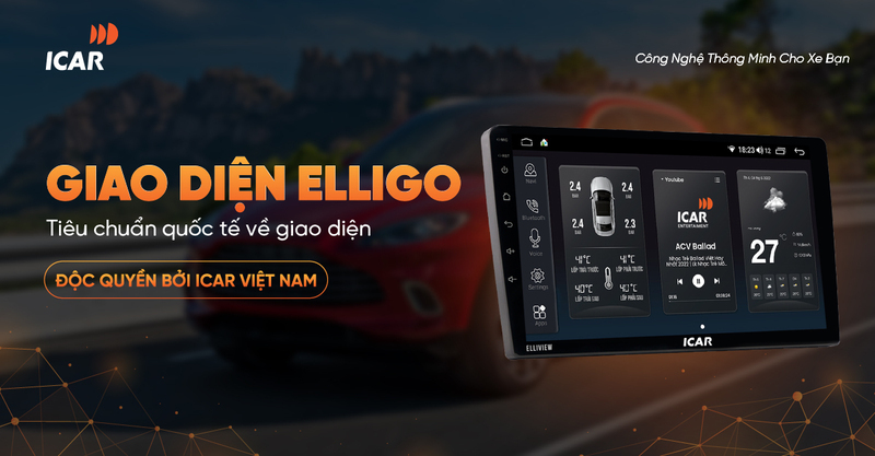 - Màn hình Android ICAR Elliview UE Lite đươc trang bị thêm trợ lý giọng nói ICAR V bằng ngôn ngữ Việt Nam, giúp bạn điều khiển màn hình dễ dàng bằng giọng nói, đảm bảo an toàn hơn khi lái xe.