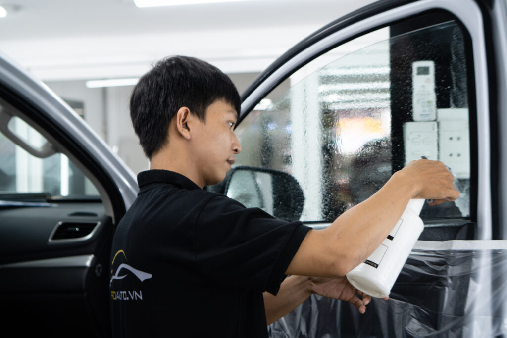 Hình ảnh thi công dán phim cách nhiệt xe ô tô tại Proauto.vn