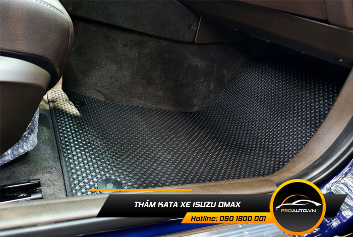 Thảm lót sàn Kata có tính năng bảo vệ tối đa phần sàn ô tô, hạn chế bụi bẩn từ bên ngoài gây hại cho nội thất ô tô. Với chất liệu PVC cao cấp, bền bỉ và dễ dàng vệ sinh, thảm lót sàn KATA là phụ kiện cần thiết cho Isuzu D-Max.