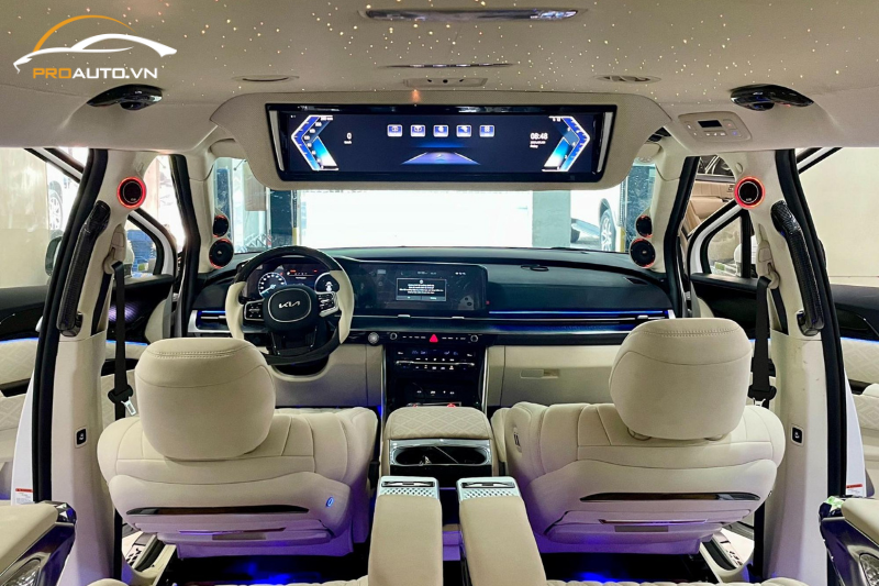 Độ trần ánh sao cho Kia Carnival 2025 mang đến không gian nội thất lãng mạn và sang trọng. Với hàng ngàn đèn LED nhỏ tạo hiệu ứng bầu trời sao lung linh, chiếc xe của bạn sẽ trở nên độc đáo và thu hút mọi ánh nhìn.