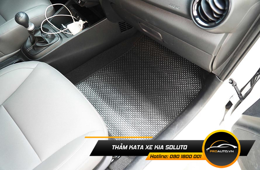 Thảm lót sàn Kata có tính năng bảo vệ tối đa phần sàn ô tô, hạn chế bụi bẩn từ bên ngoài gây hại cho nội thất ô tô. Với chất liệu PVC cao cấp, bền bỉ và dễ dàng vệ sinh, thảm lót sàn KATA là phụ kiện cần thiết cho Kia Soluto.